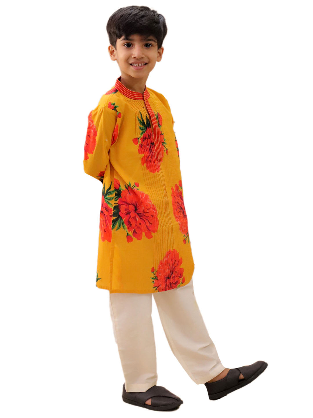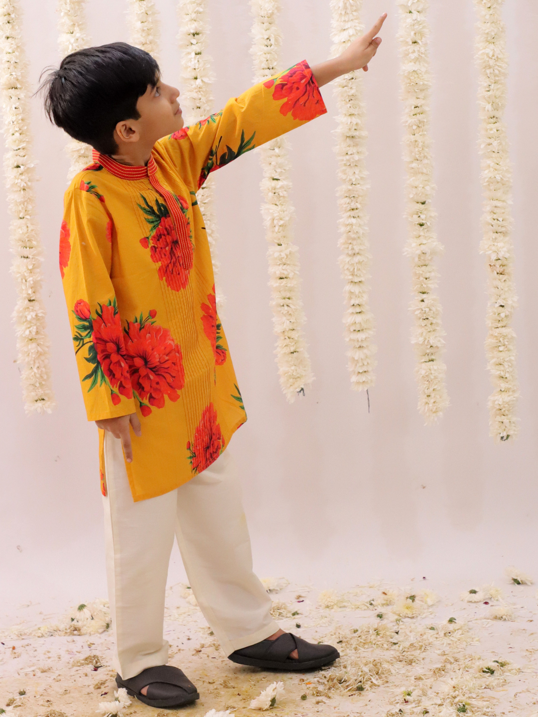 Genda Phool Mustard Kurta and White Pant Set for Boys