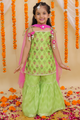 Mishti Green Kurta Sharara with Pink Dupatta Set For Girls