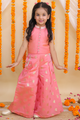 Add a touch of festive elegance to your little girl’s wardrobe with the Lil Drama Chanderi Sleeveless Solid Top with Foil Bird Print Pant Set in peach. Designed for comfort and style, this set is perfect for family gatherings, festive occasions, or special celebrations, giving her a chic yet traditional look.