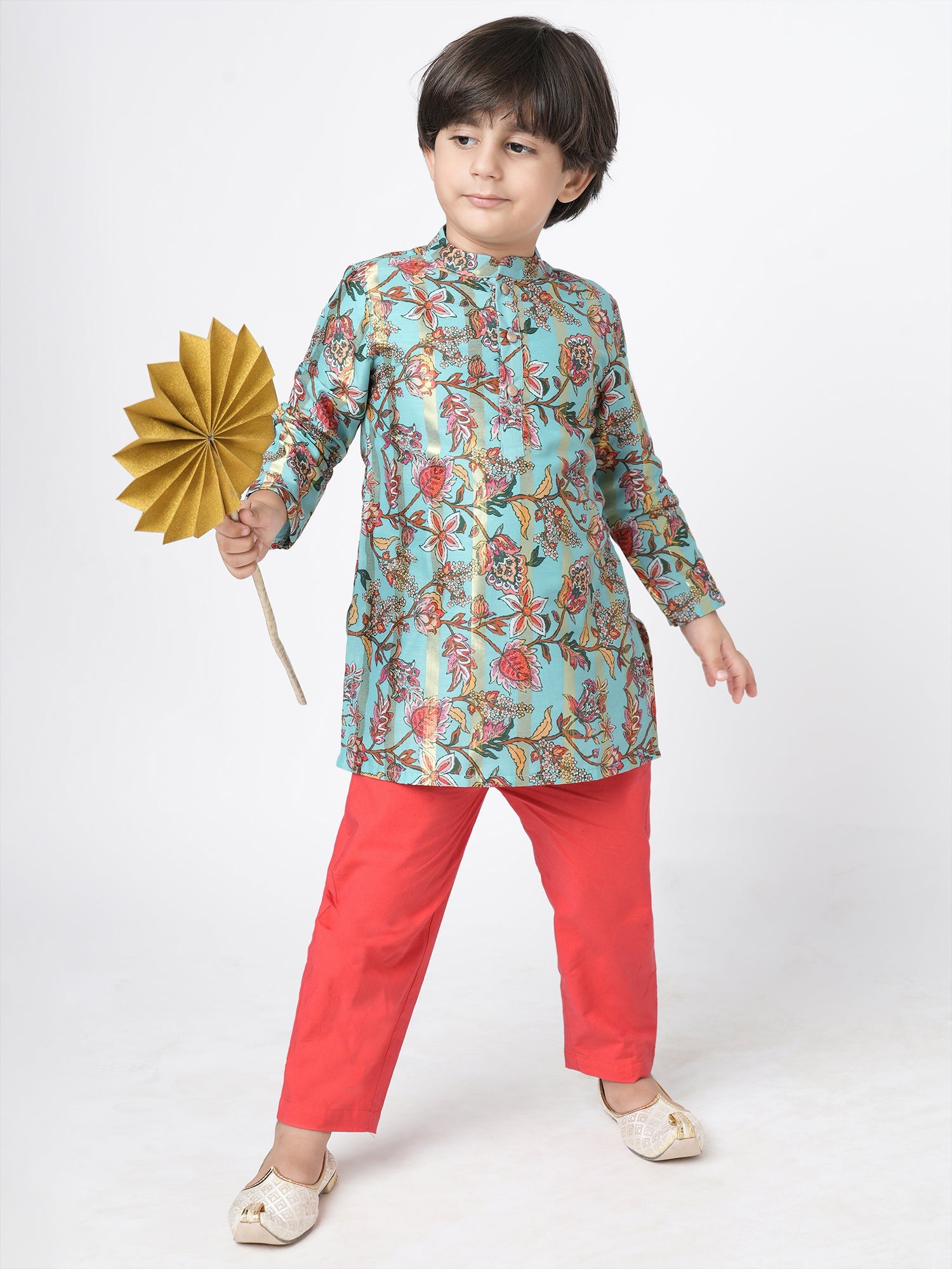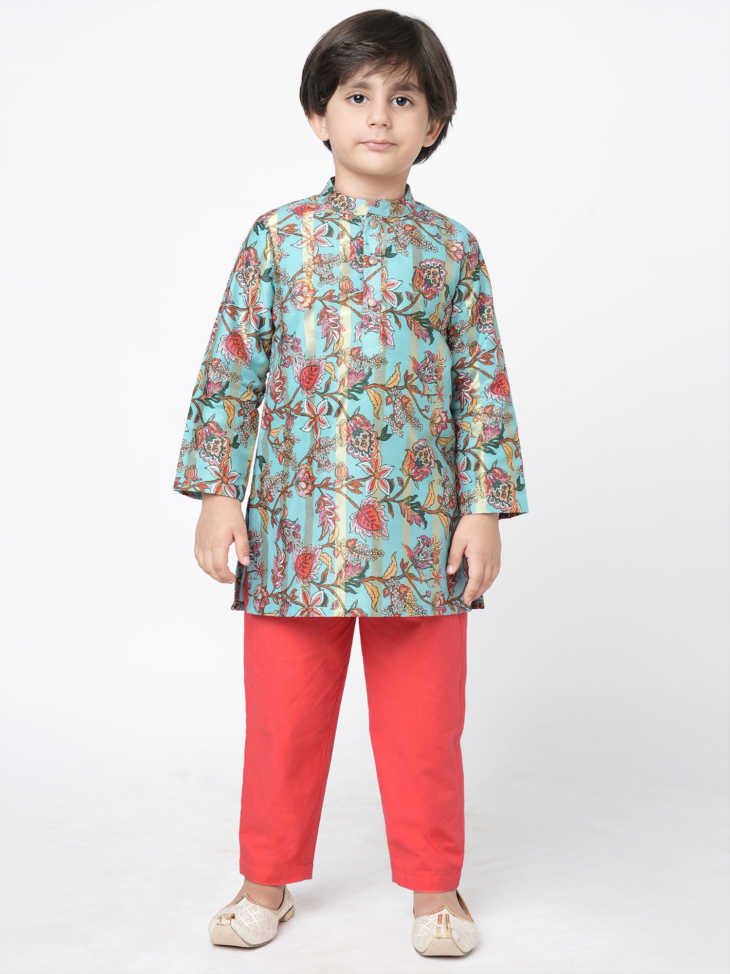 - Unique Design: The kurta features a beautiful green & red floral print, while the straight shape and regular style add a touch of elegance.