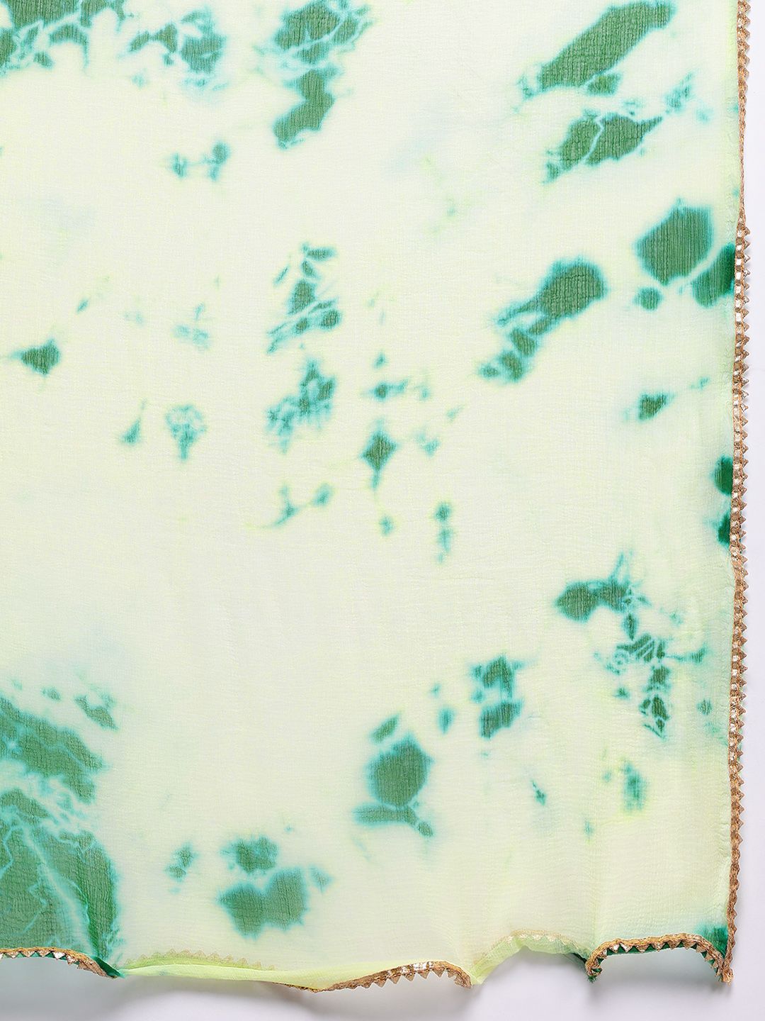 Dhiyona VA Women'sLeheriya Printed Sequinned Kurta With Trousers & Dupatta