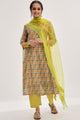 Dhiyona VA Women'sLime Green Ethnic Motifs Printed Mirror Work A-Line Kurta & Trousers With Dupatta