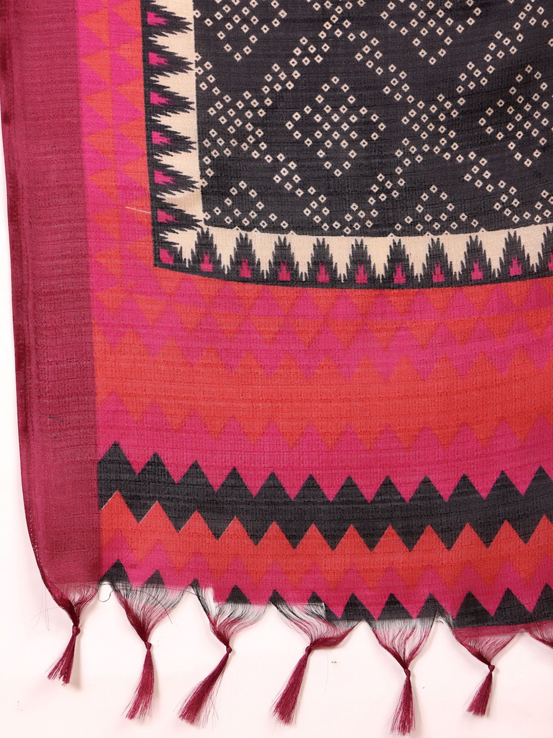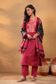Magenta and black and gold-toned yoke design Kurta with Trousers with dupatta