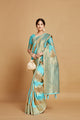 Dhiyona GR Women's Maira Cyan Blue Leheriya Zari Woven Design Linen Saree