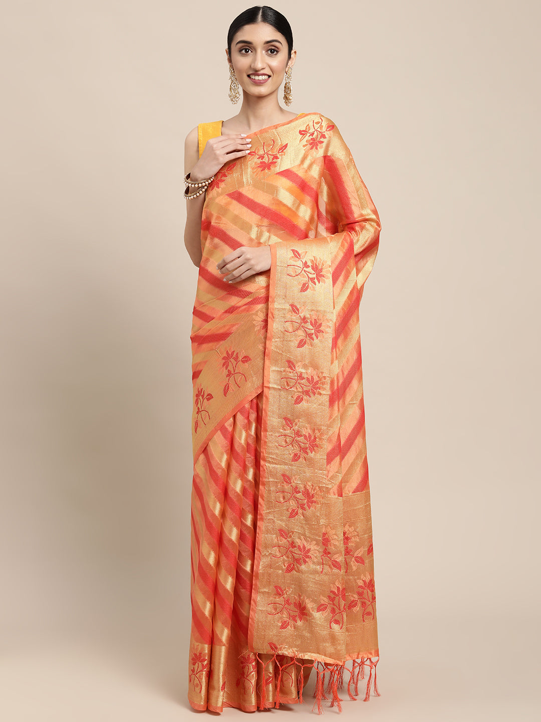 Dhiyona GR Women's Manvika Melon Orange Organza Saree