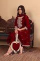 Dhiyona VA Women'sMaroon Floral Yoke Design Sequinned Velvet Straight Kurta with Trousers & Dupatta