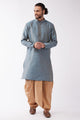 Men's Aqua Silk Blend Straight Kurta and Dhoti Set