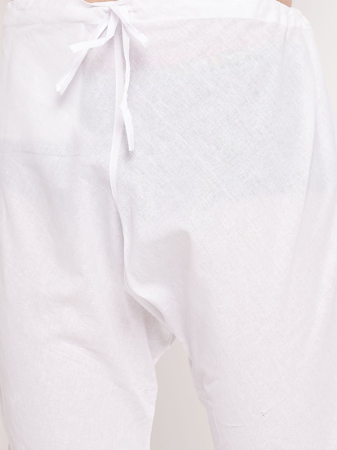 Description: Classic Ethnic Motif Jacquard Silk Blend Kurta with Golden Buttons And White Cotton Pyjama