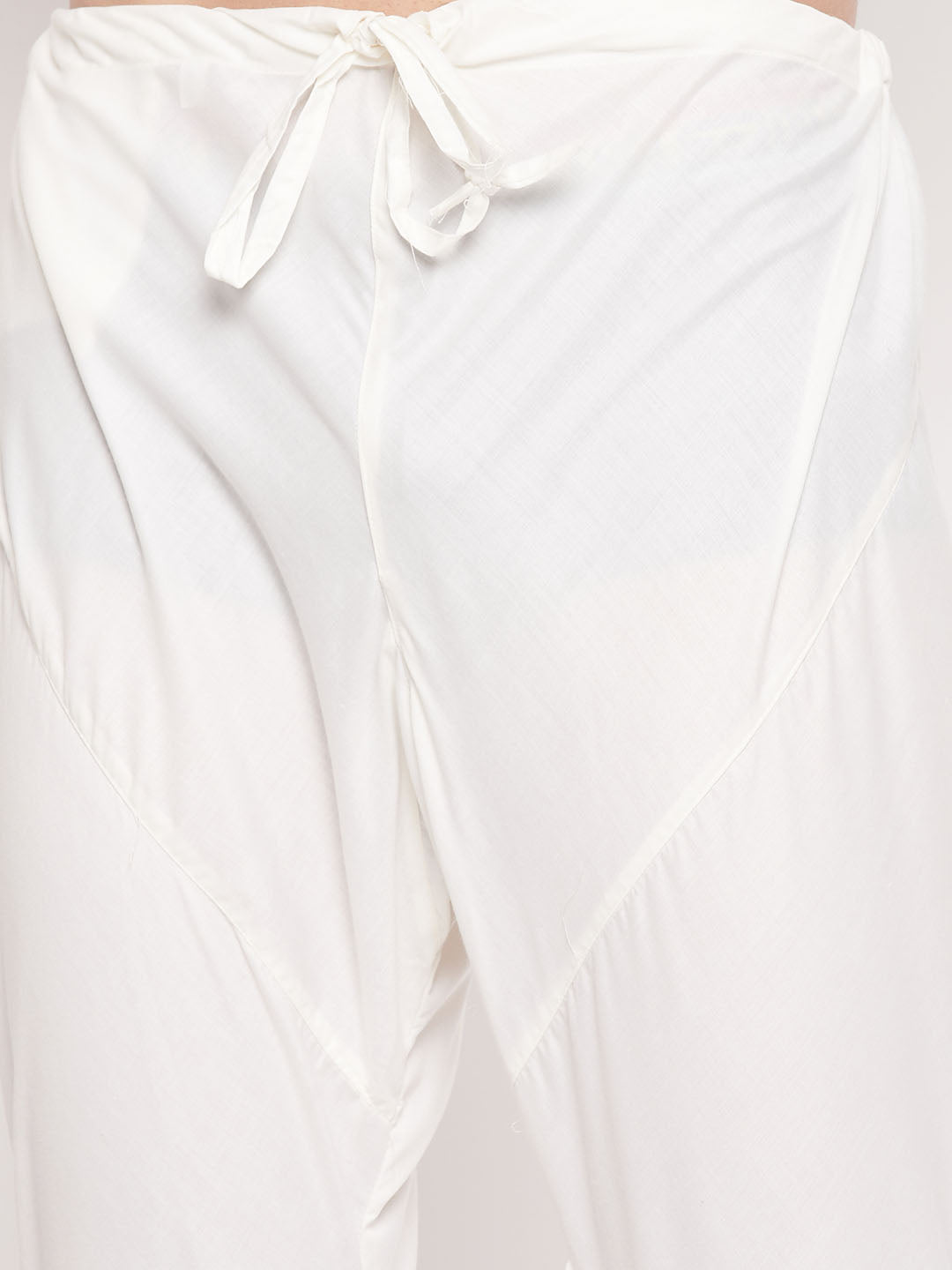 Description: Classic Ethnic Motif Jacquard Silk Blend Kurta with Golden Buttons And Cream Pyjama