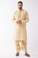 Men's Beige Silk Blend Straight Kurta and Dhoti Set