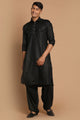 Men's Black Cotton Blend Pathani Pathani Kurta Set