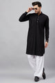 Men's Black Cotton Linen Pathani Pathani Kurta Set