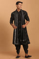Men's Black Georgette Straight Kurta and Dhoti Pant Dupatta