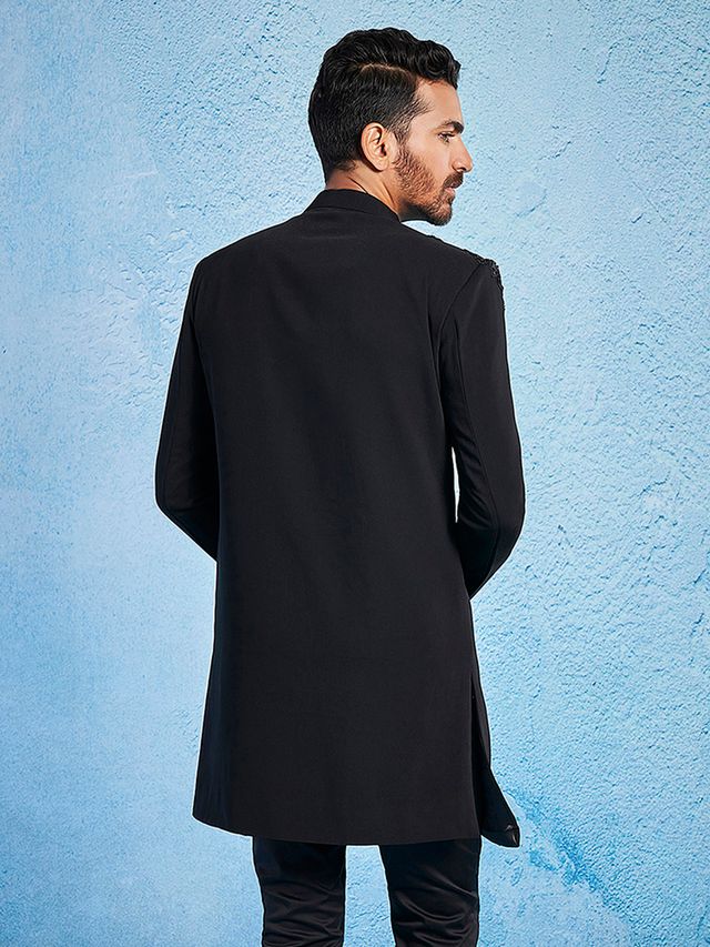 Men's Black Imported Suiting Lycra Straight Sherwani Only Top