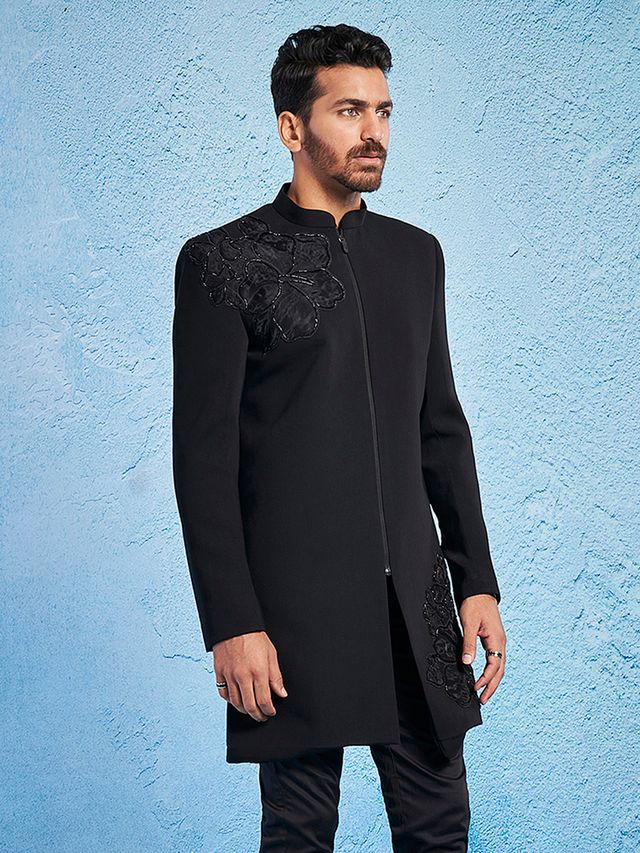 Description: Imported Suiting Lycra Fabric Embroidered Sequiend Indo Western for Men.