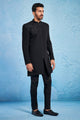 Men's Black Imported Suiting Lycra Straight Sherwani Set