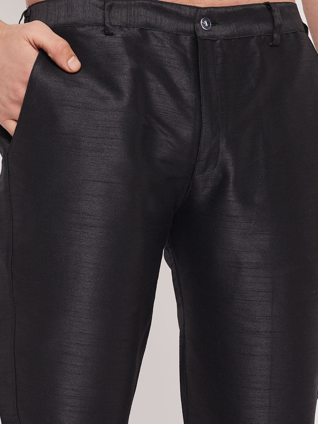 Men's Black Silk Blend Straight Kurta Pyjama Set