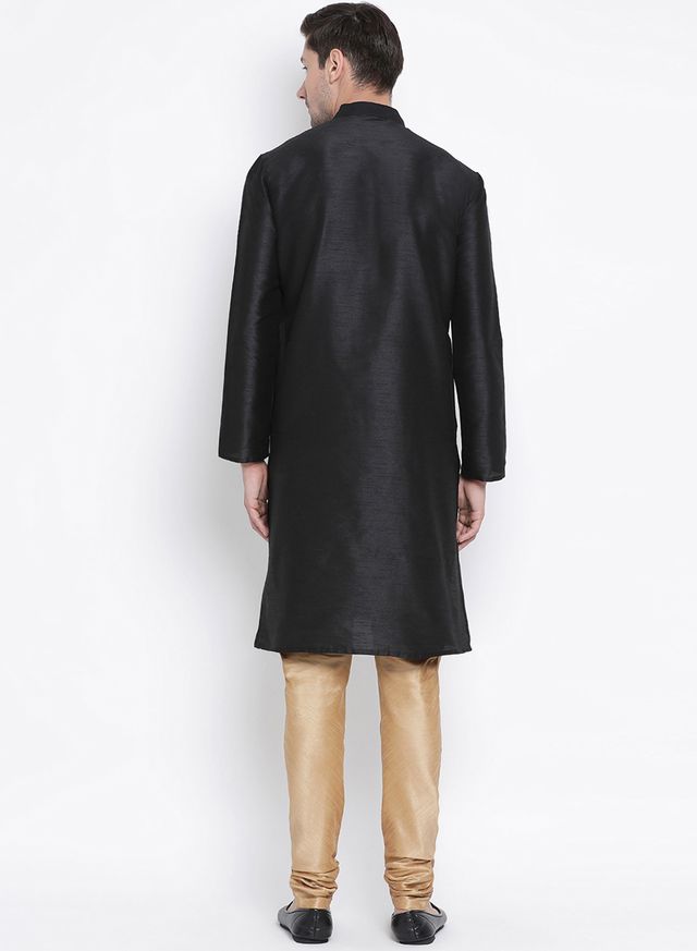 Men's Black Silk Blend Straight Kurta Pyjama Set