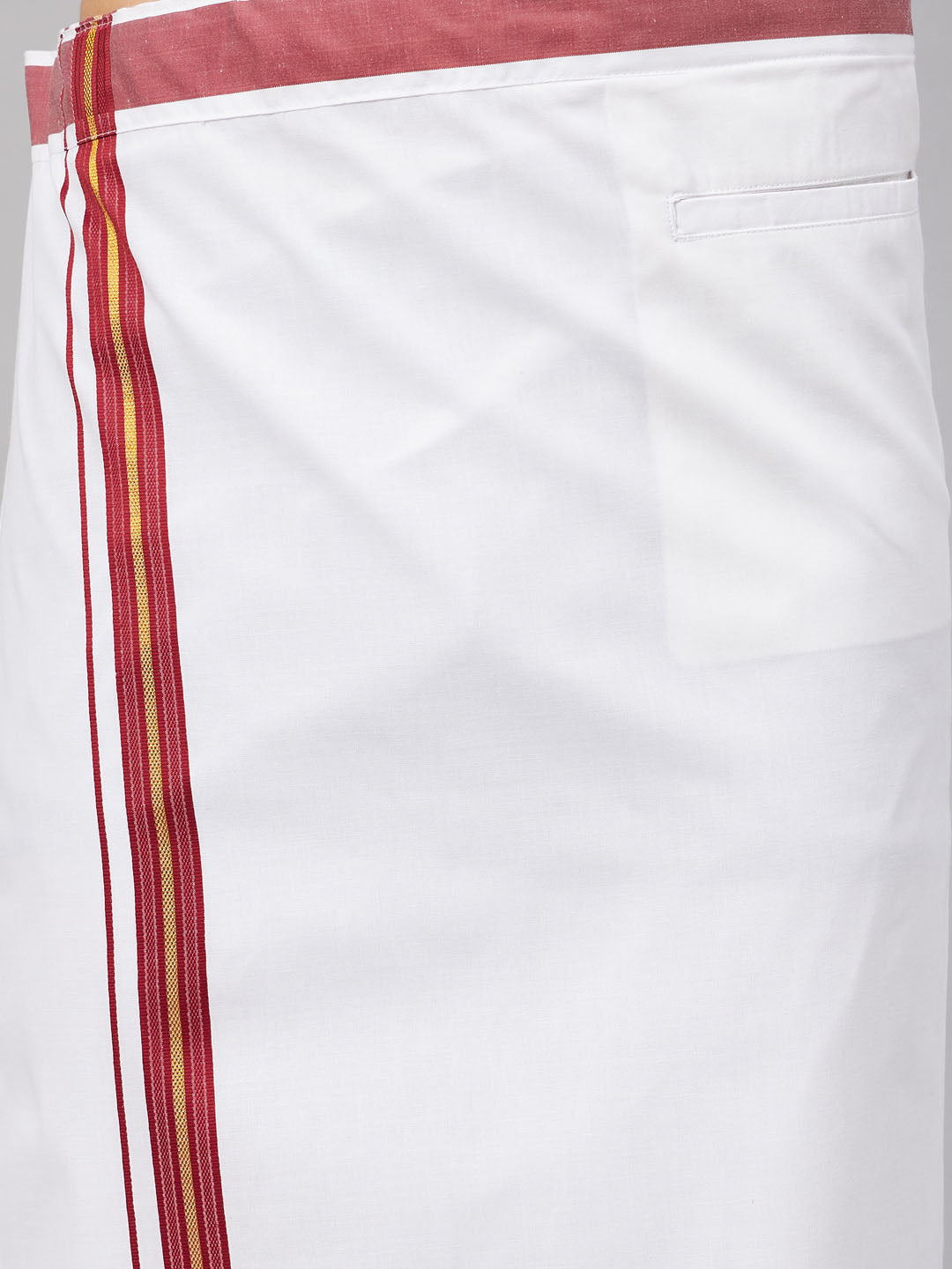 Description: South Indian Style Full Sleeves Silk Shirt And Mundu Set