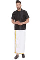 Men's Black Silk Blend Straight Shirt And Mundu