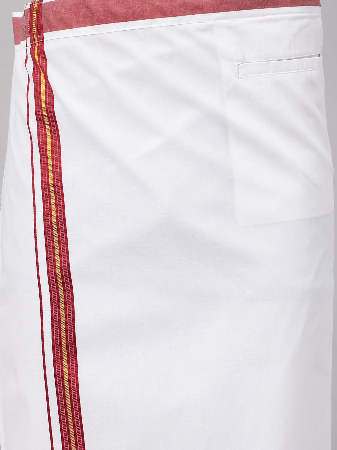 Description: South Indian Style Half Sleeves Silk Shirt And Mundu Set