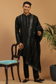 Men's Black Viscose Straight Kurta Pyjama & Dupatta Set