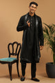 Men's Black Viscose Straight Kurta Pyjama & Dupatta Set