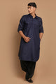 Men's Blue Cotton Blend Pathani Pathani Kurta Set