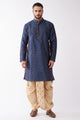 Men's Blue Silk Blend Straight Kurta and Dhoti Set