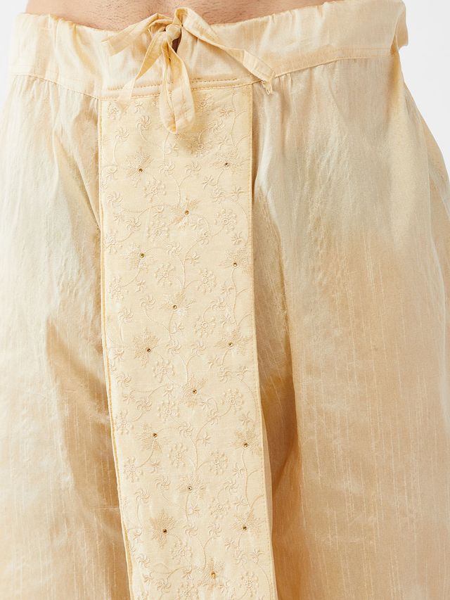 Description: Silk Blend Calf Length Kurta And Embroidered Panel Traditional Dhoti
