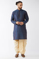 Men's Blue Silk Blend Straight Kurta and Dhoti Set
