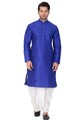Men's Blue Silk Blend Straight Kurta and Dhoti Set