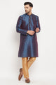 Men's Blue Silk Blend Straight Kurta Pyjama Set
