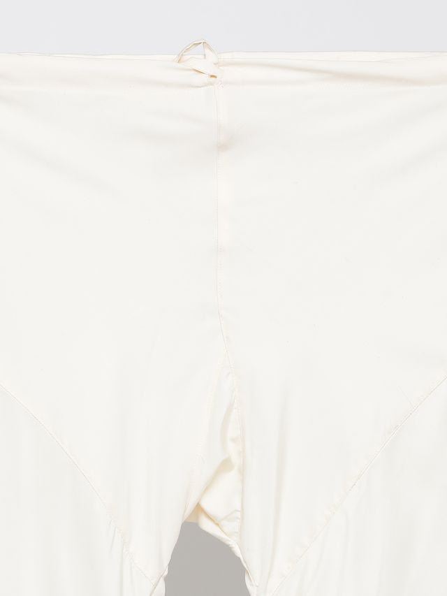 Description: A layered two part asymetrical kurta with cuffed sleeves made on a fine high quality cotton satin and ornamented with metal buttons. Set comes with cotton pyjama.