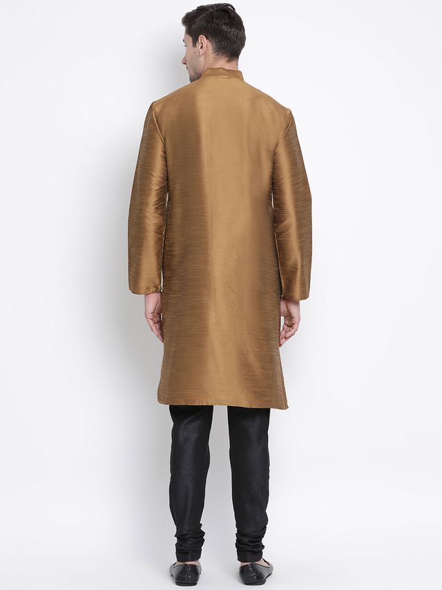 Men's Coffee Silk Blend Straight Kurta Pyjama Set