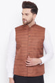 Men's Coffee Silk Blend Straight Nehru Jacket
