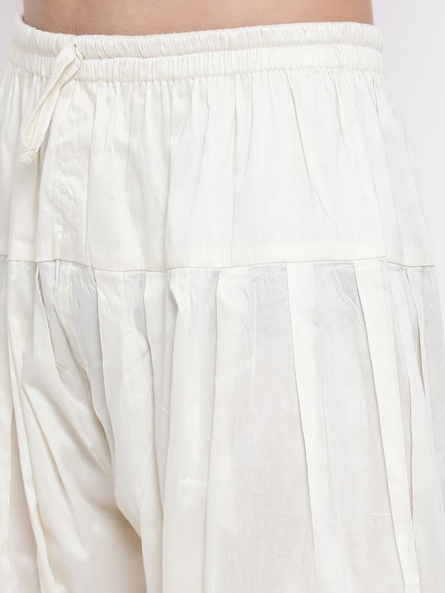 Men's Cream Cotton Blend Pathani Pathani Kurta Set