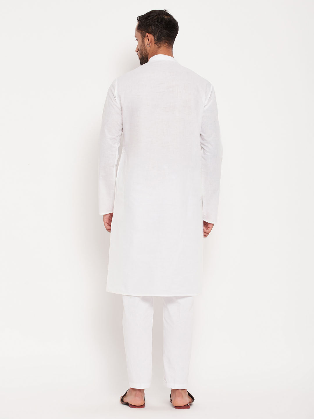 Description: Classic Cotton Kurta With Mandarin Collar And Full Sleeves. Comes With Pant Style Pyjama.