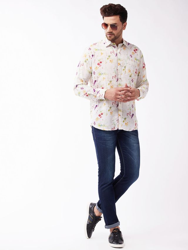 Description: Digitally Printed Floral Semi Ethnic Shirt With Embellishements