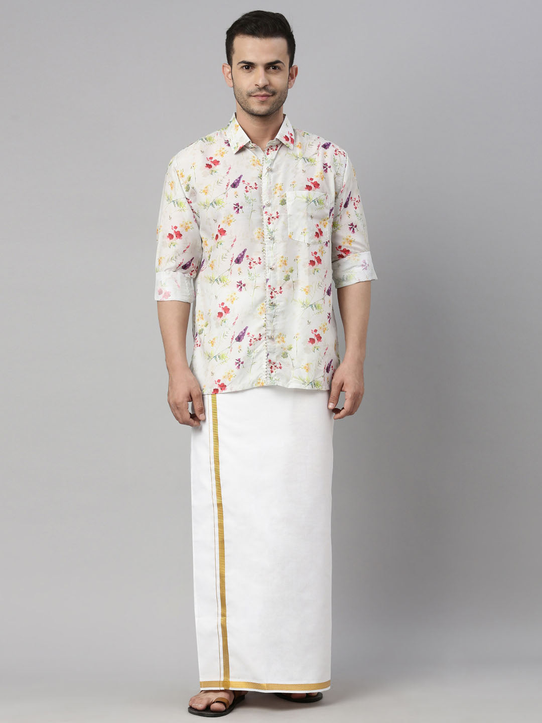 Description: Digitally Printed Floral Semi Ethnic Shirt With Embellishements
