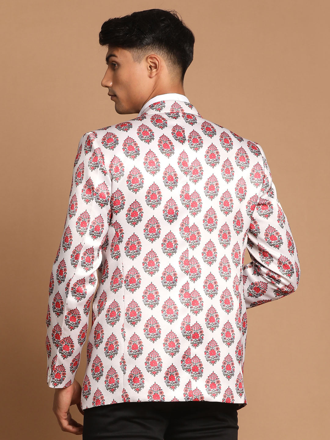 Description: Tradition Meets Modern Day Fashion In This Block Ethnic Printed Satin Blazer.