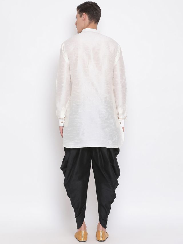 Men's Cream Silk Blend Pathani Kurta and Dhoti Set