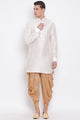 Men's Cream Silk Blend Pathani Kurta and Dhoti Set