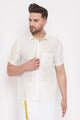 Men's Cream Silk Blend Straight Ethnic Shirt