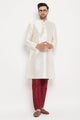 Men's Cream Silk Blend Straight Kurta Pyjama Set