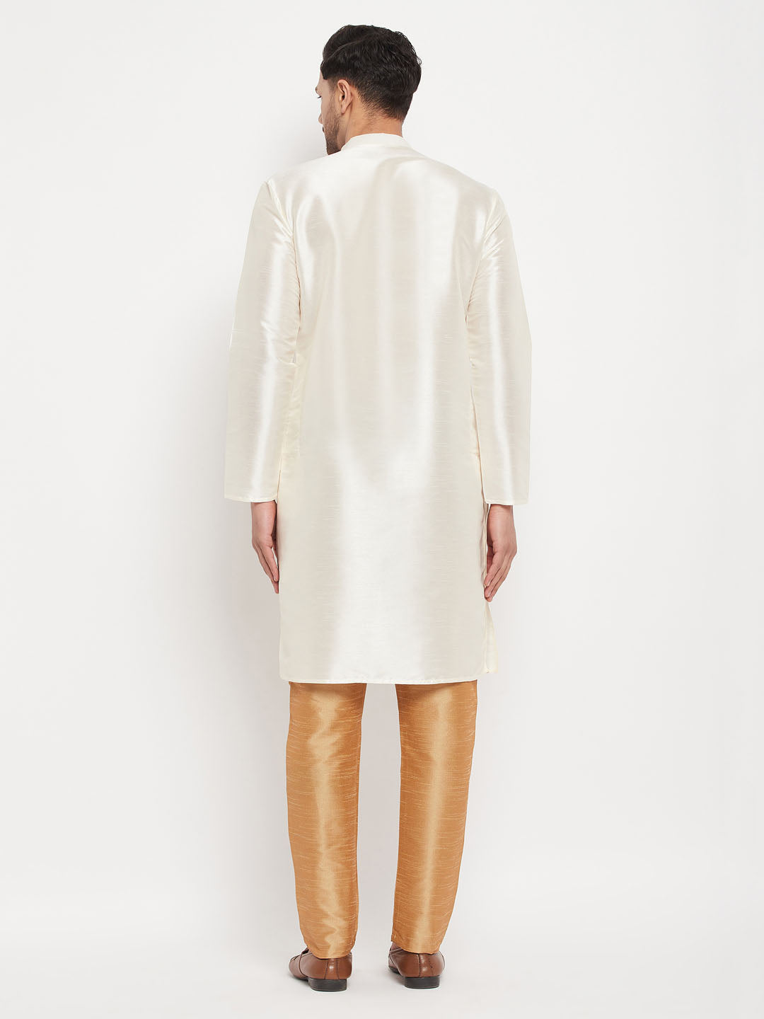 Men's Cream Silk Blend Straight Kurta Pyjama Set