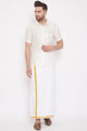 Men's Cream Silk Blend Straight Shirt And Mundu