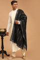 Men's Cream Viscose Blend Asymmetric Kurta Pyjama & Dupatta Set