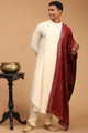 Men's Cream Viscose Blend Asymmetric Kurta Pyjama & Dupatta Set