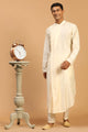 Men's Cream Viscose Blend Asymmetric Kurta Pyjama Set